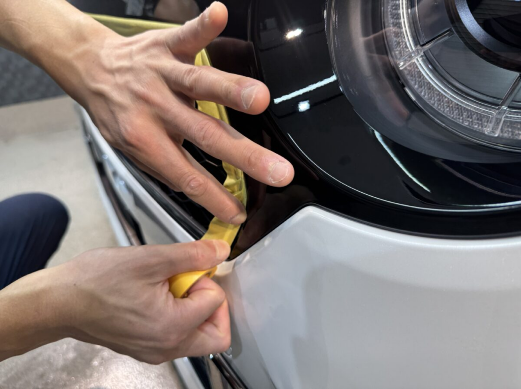 特にグリルの隙間にはコンパウンドの粉が入りやすいため、密封することでエアクリーナーやラジエーターなどへの飛散を防ぎます。